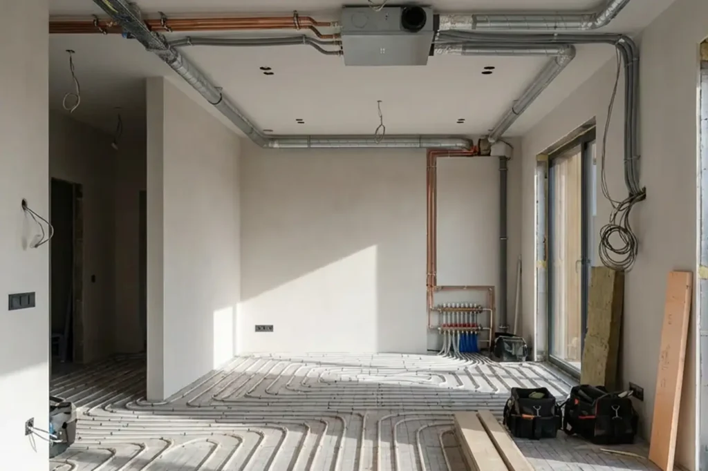 - Ogrzewanie płaszczyznowe: Profesjonalny montaż "podłogówki", która zapewnia idealny rozkład temperatur i estetykę wnętrz.