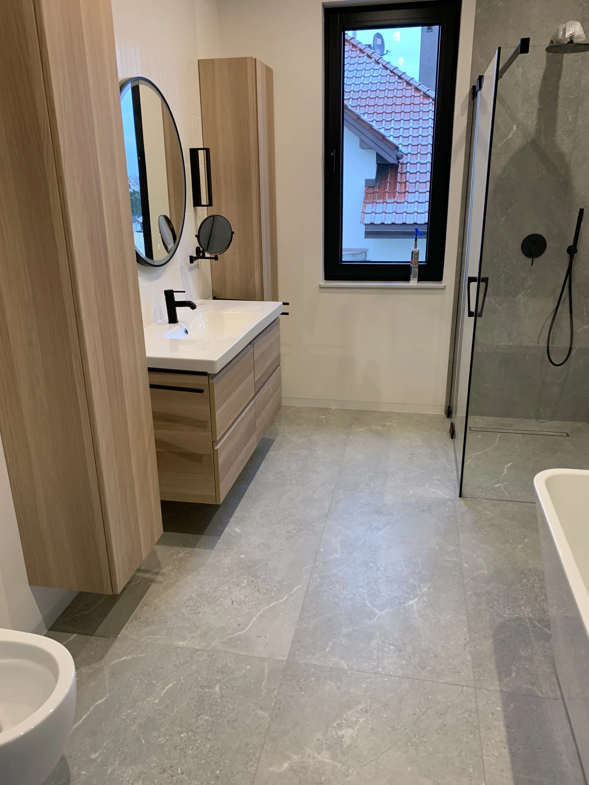 - Strefa prysznica: Montaż brodzików oraz odpływów liniowych z zachowaniem odpowiednich spadków podłogi.