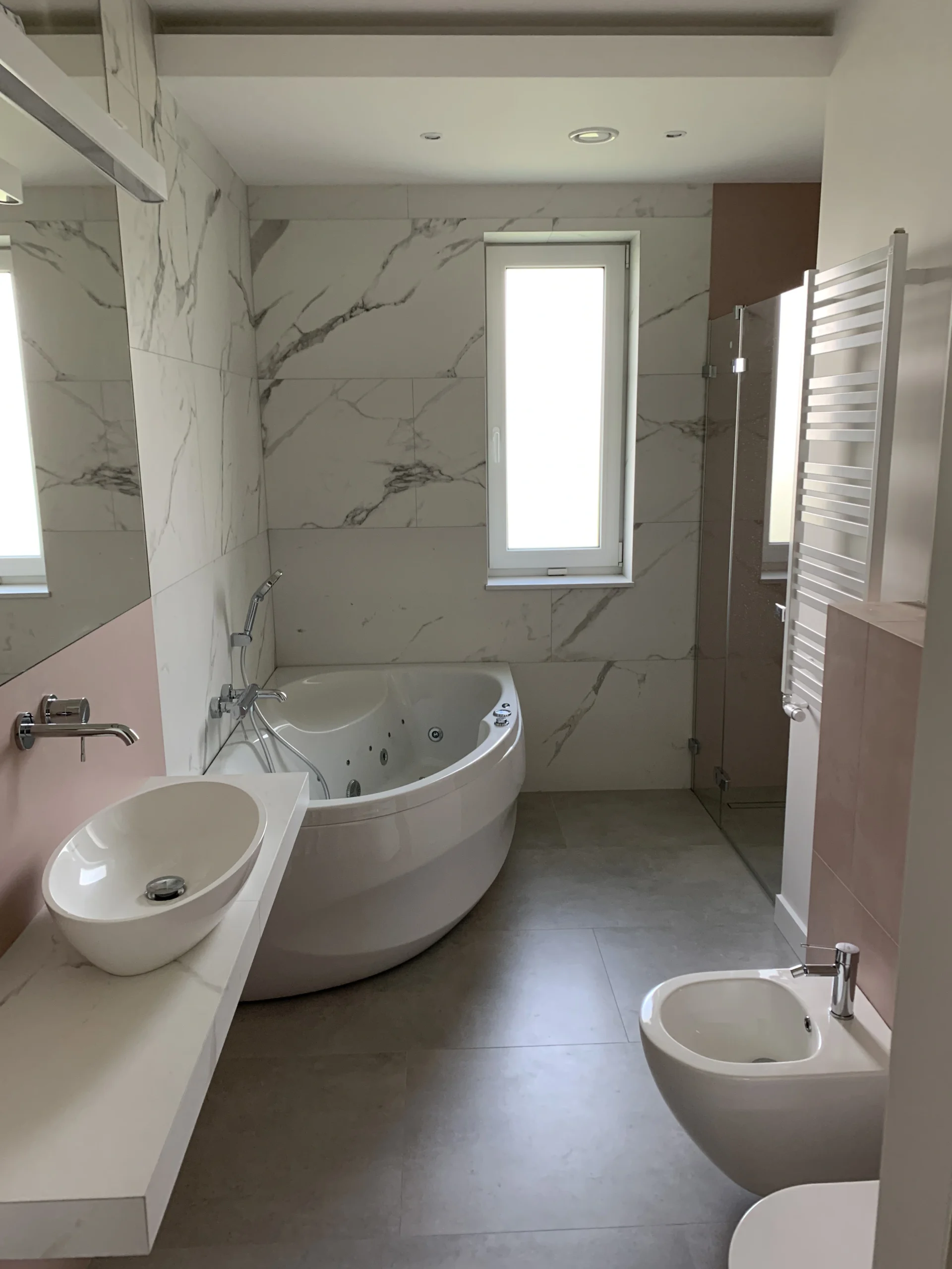 - Hydroizolacja: Każda łazienka jest przez nas zabezpieczana „płynną folią” i taśmami uszczelniającymi, co daje 100% gwarancji ochrony przed zalaniem i wilgocią.